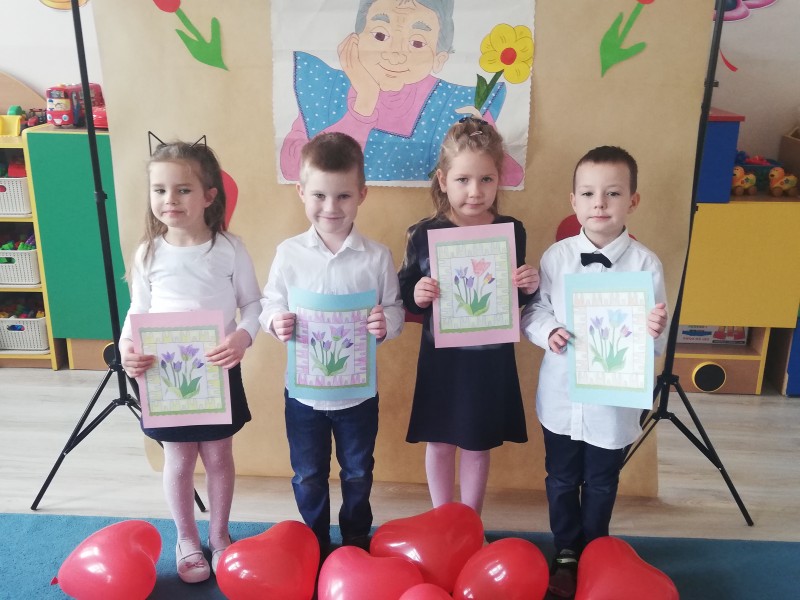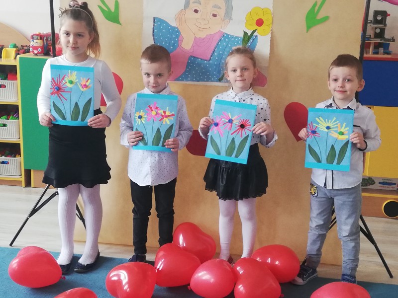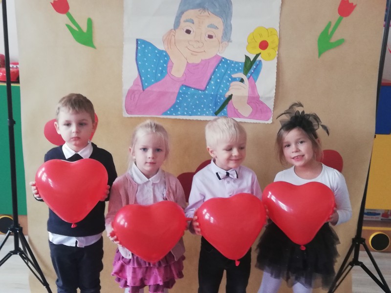 W czwartek 21 styczna MACZKI zaprezentowaĹy swĂłj program artystyczny z okazji ĹWIÄTA BABCI I DZIADKA. PrzygotowaĹy piosenki ,,Polka dla dziadziusia, Droga babciu, drogi dziadku"; wierszyki ,,Babuniu - Dziadziuniu, Naszym babciom i dziadkom" oraz przepiÄkny taniec z balonami. WykonaĹy kolorowe prezenty i uwieczniĹy swoich kochanych DziadkĂłw w rysunkach. Na koniec zapozowaĹy do wspĂłlnych zdjÄÄ ĹźyczÄ c BABCIOM I DZIADKOM - STU LAT !!!