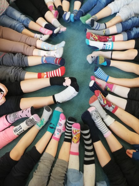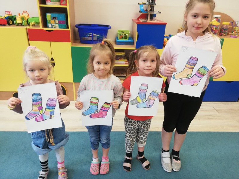 MACZKI nie mogĹy byÄ obojÄtne i zapomnieÄ o takich dzieciach, ktĂłre sÄ wĹrĂłd nas. Na znak solidarnoĹci w piÄ tek przyszĹy do przedszkola w róşnych skarpetkach i wykonaĹy przepiÄkne kolorowe skarpetki oraz zrobiĹy sobie wspĂłlne zdjÄcie wyraĹźajÄ c miĹoĹÄ i wzajemnÄ przyjaşŠdo dzieci z zespoĹem Downa.