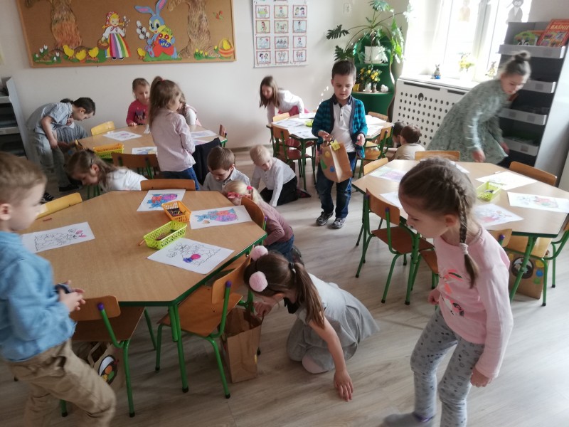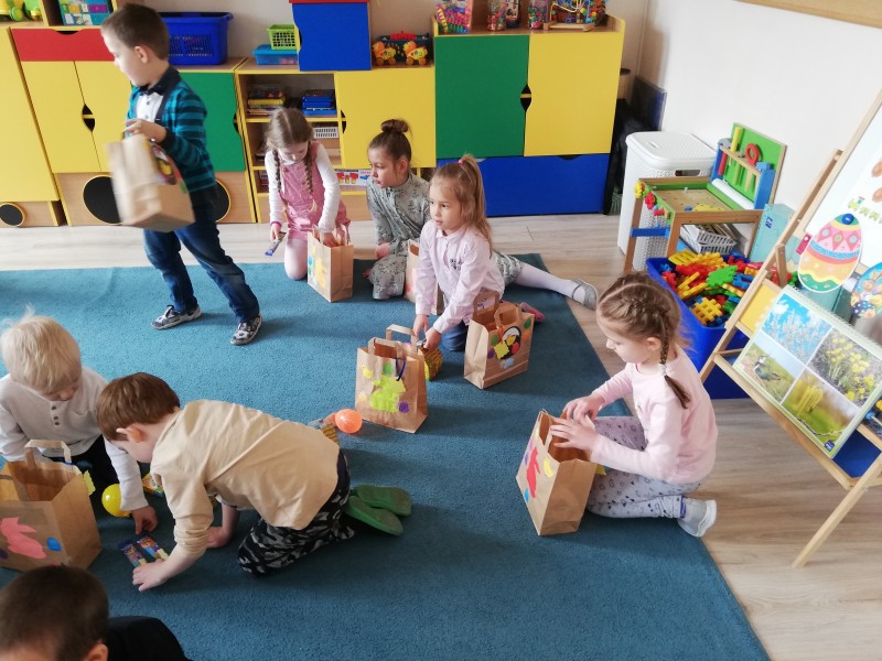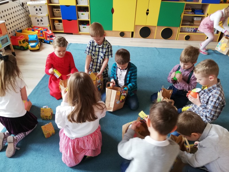 MACZKI po spotkaniu z ZajÄ czkiem Wielkanocnym wrĂłciĹy do przedszkola i zaczÄĹy szukaÄ ukrytych prezentĂłw. W szukaniu prezentĂłw pomocna okazaĹa siÄ znajomoĹÄ liter i umiejÄtnoĹÄ odczytania swojego imienia. MACZKI poradziĹy sobie z tym wspaniale, wspierajÄ c i pomagajÄ c sobie wzajemnie. Wszystkie dzieci odnalazĹy prezenty i byĹy bardzo z nich zadowolone.