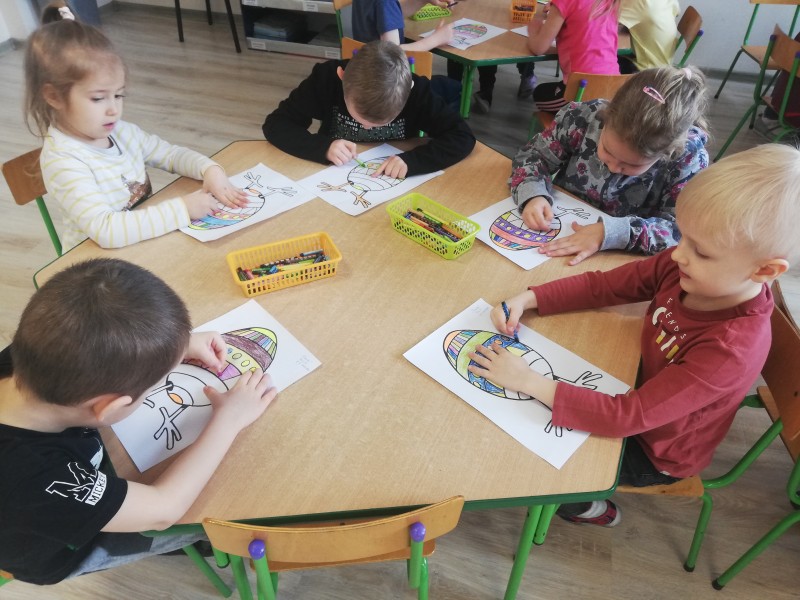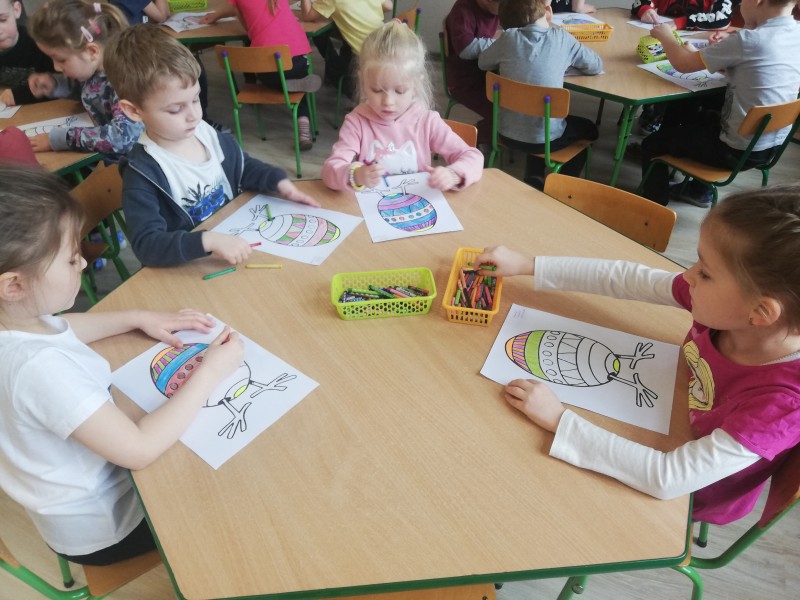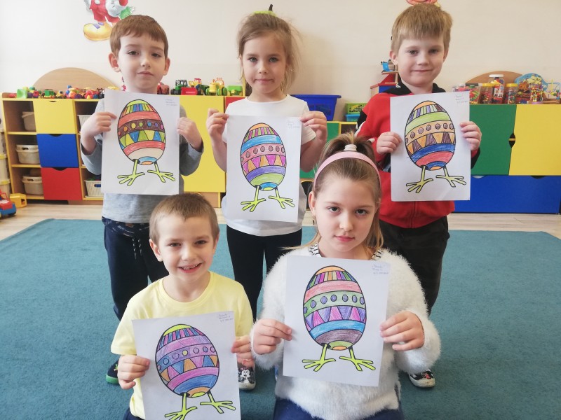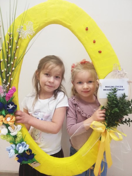 W minionym tygodniu MACZKI przygotowując się do Świąt Wielkanocnych przygotowywały kolorowe pisanki. W ozdabianiu pisanek dzieci wykorzystały róşnorodną kolorystykę barw kredek i pisakĂłw fluorescecyjnych. Wszystkie prace wyszły wspaniale. Dzięki mamie Kamilka MACZKI miały moĹźliwość sfotografować się w pięknie przygotowanej pisance ze swoim przyjacielem.