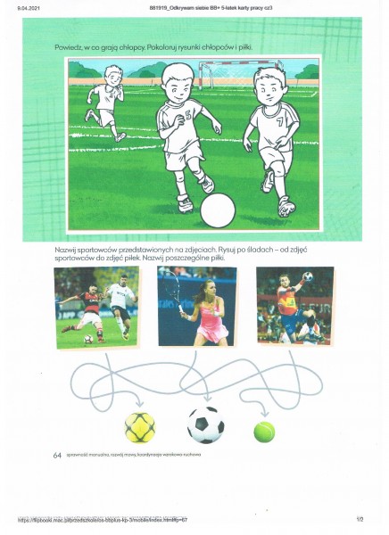* nazwij dyscypliny sportowe. Rysuj po Ĺladzie drogi piĹek, i tak:
