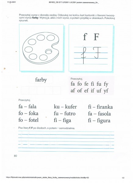 Czytanie sylab i wyrazĂłw z literÄ F. Pisanie litery po Ĺladzie i samodzielnie.