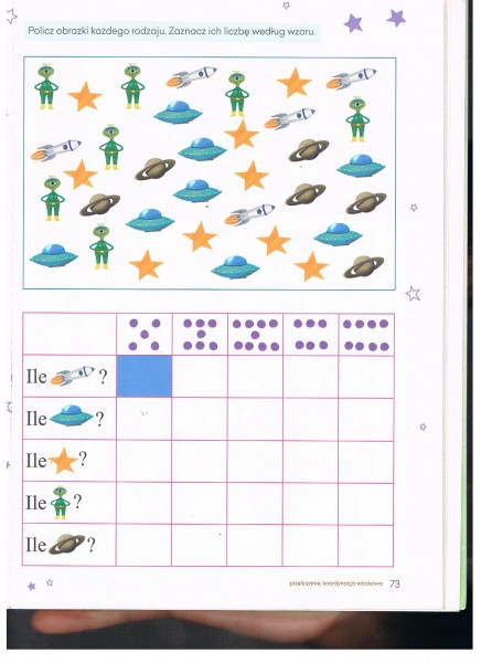 5. Praca w ksiÄ Ĺźce zielonej 5-6 latki s. 73 (Äwiczenia w liczeniu w zakresie 9)