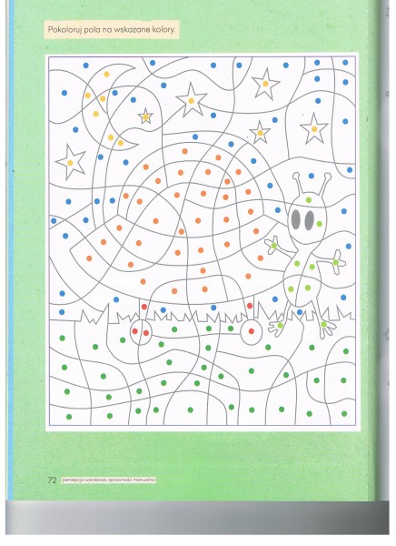 *pokoloruj tylko pola z kropkÄ pomaraĹczowÄ , czerwonÄ , şóĹtÄ i jasnozielonÄ , zrĂłb to dokĹadnie.