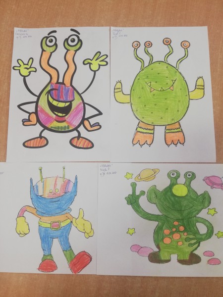 Ĺźce i prace plastyczne. Dzieci chÄtnie prezentowaĹy swoje piÄkne kolorowe prace. Brawo! Super prace!!!![]()