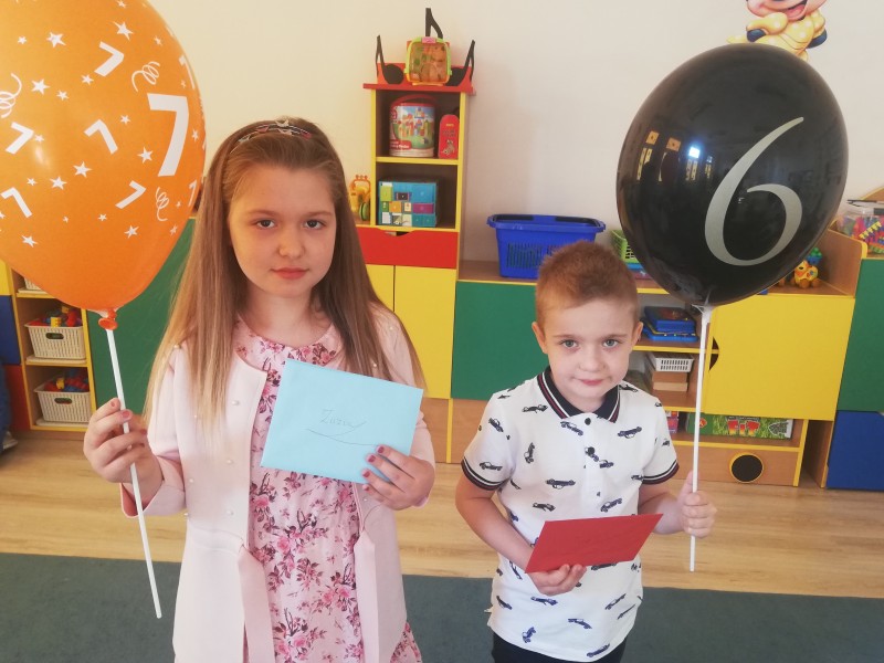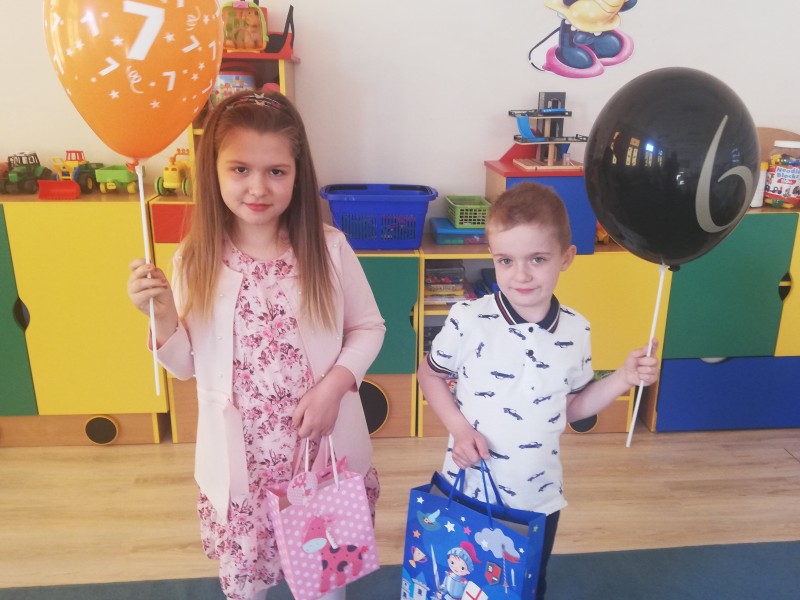 23 kwietnia swoje 6 urodziny obchodziĹ FILIP. P - a 24 kwietnia swoje 7 urodziny obchodziĹa ZUZIA S. Obydwoje solenizaci zostali naleĹźycie uchonorowani przez swoich kolegĂłw z grupy. ZUZI i FILIPOWI dzieci zaĹpiewali STO LAT, zĹoĹźyli Ĺźyczenia i wrÄczyli kartkÄ urodzinowÄ . Solenizanci zrobili zdjÄcia najpierw ze swoimi wybranymi przyjaciĂłĹmi a później z caĹÄ grupÄ . Na koniec ZUZIA i FILIP poczÄstowali cukierkami wszystkie dzieci, ktĂłrych starczyĹo jeszcze na nastÄpne dni.