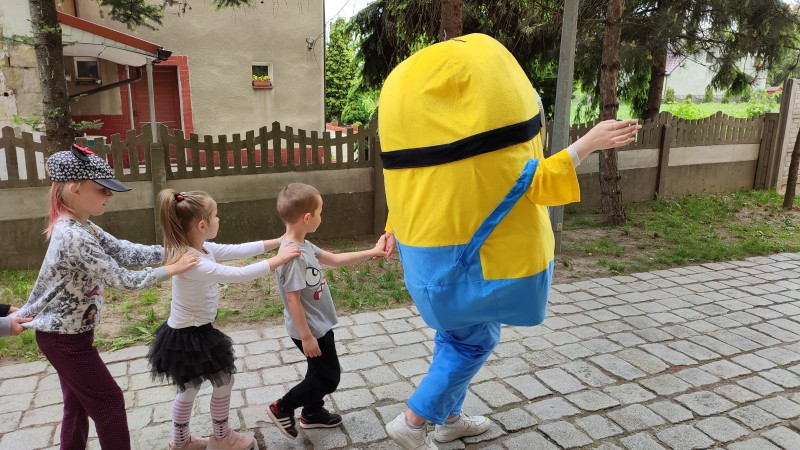 CaĹoĹci imprezy na placu zabaw 1 czerwca dopeĹniĹo pojawienie siÄ maskotki Minionka. WywoĹaĹa ona u MACZKĂW wielkÄ falÄ radoĹci. KaĹźde z dzieci chciaĹo z Minionkiem ,,przybiÄ piÄ tkÄ", przytuliÄ siÄ i wspĂłlnie potaĹczyÄ.
