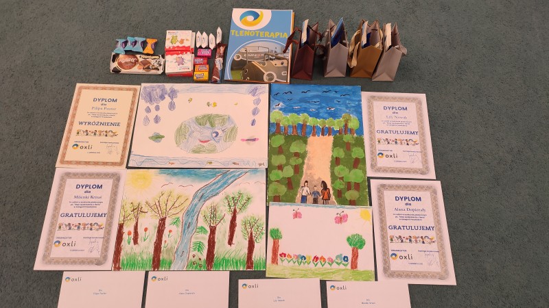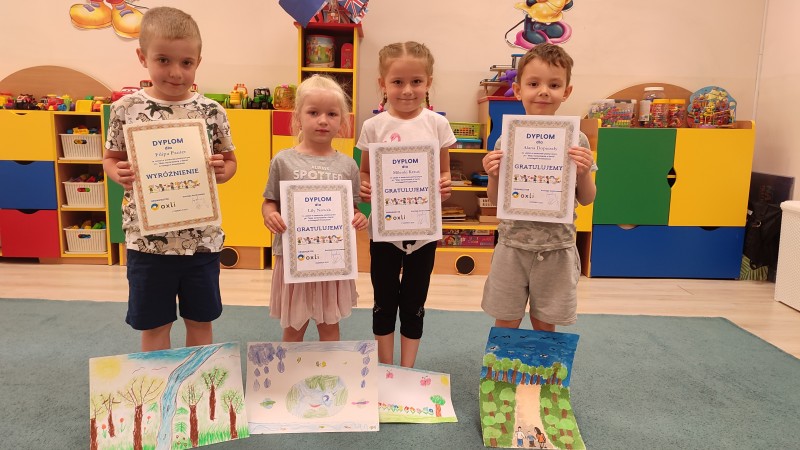 Dzieci z naszej grupy: LILY-MILENKA-FILIP. P-ALAN.D wziÄli udziaĹ w konkursie Moje wyobraĹźenie o tlenie" organizowanym przez OXLI Zdrowie w Ostrowie Wlkp. Zadaniem konkursowym byĹo wykonanie pracy plastycznej przedstawiajÄ