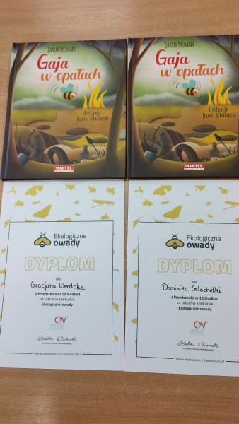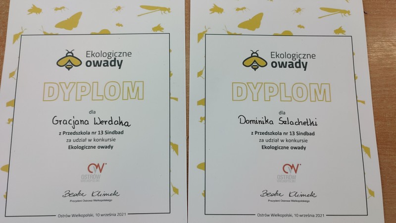 W maju 2021r dzieci z naszej grupy -DOMINIK Sz. GRACJAN i NATANIEL - wziÄli udziaĹ w konkursie ,,Ekologiczne Owady" konkurs odbyĹ siÄ z okazji Ĺwiatowego dnia pszczĂłĹ. Nasi chĹopcy wykonali biedronkÄ z wytĹaczanki do jajek oraz zakrÄtek z róşnych butelek. 10 wrzeĹnia w UrzÄdzie Miasta zostaĹ rostrzygniÄty konkurs. DOMINIK, GRACJAN i NATANIEL otrzymali pamiÄ