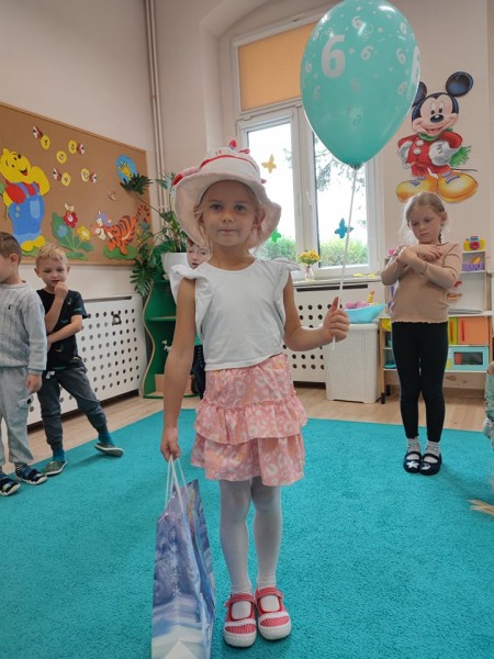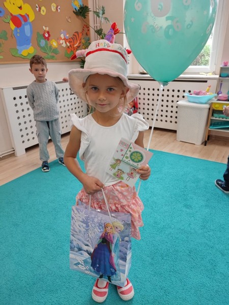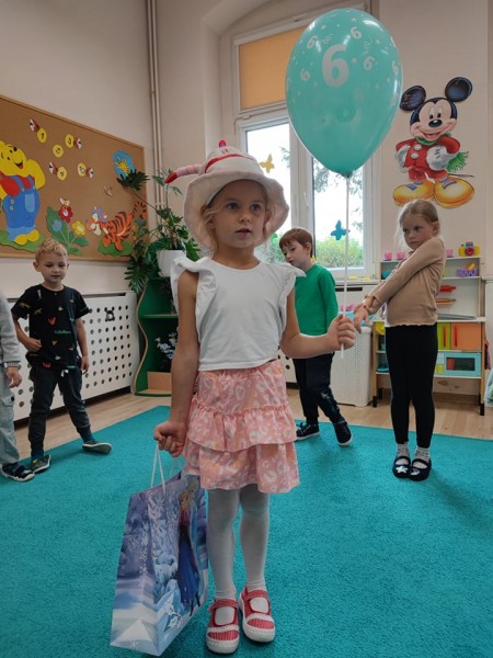 c zdrowia, uĹmiechu, piÄknych prezentĂłw i duĹźo przyjaciĂłĹ. W prezencie od dzieci otrzymaĹa balonik i kartkÄ urodzinowÄ