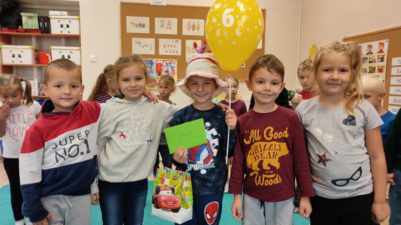 19 wrzeĹnia DOMINIK M.obchodziĹ swoje 6 urodziny. Jak zawsze Solenizant ĹwiÄtowaĹ swoje urodziny z kolegami i koleĹźankami z grupy MACZKI. Dzieci DOMINIKOWI odĹpiewaĹy gĹoĹne STO LAT!! zĹoĹźyĹy Ĺźyczenia, ĹźyczÄ