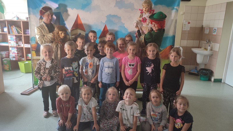 23 wrzeĹnia w czwartek MACZKI uczestniczyĹy w spektaklu teatralnym pt. ,,ZĹOTY PROMYCZEK" przygotowany przez aktorĂłw kaliskiego teatru WĹĂłczykij. Dzieci z duĹźym zaciekawieniem ĹledziĹy losy ksiÄcia i dziewczynki o imieniu ZĹoty Promyczek. Na koniec przedstawienia aktorĂłw nagrodzono gromkimi brawami i zapozowano do wspĂłlnego zdjecia. DziÄkujemy za piÄknÄ