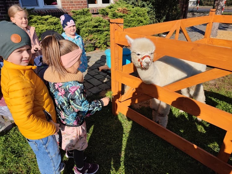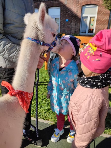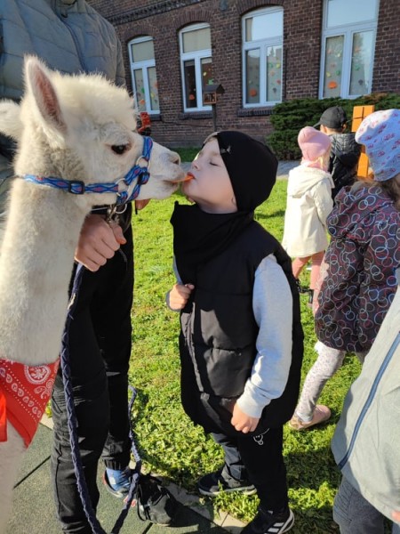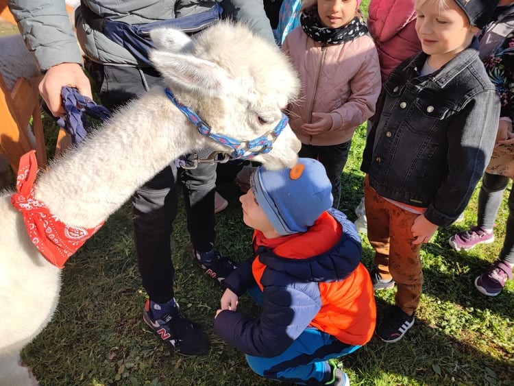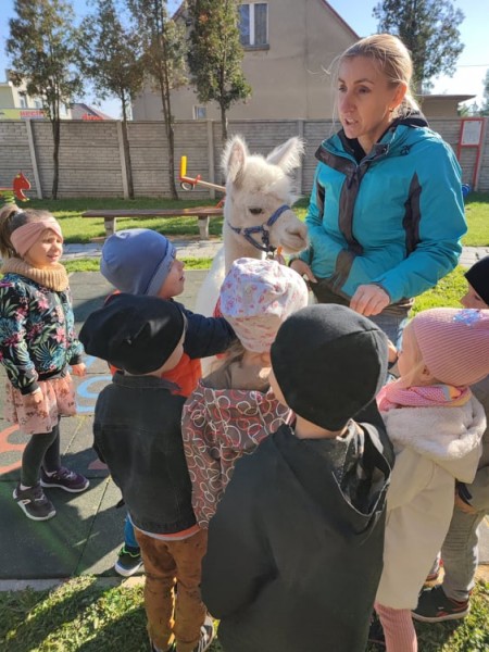 W piÄ tek 8 paĹşdziernika nasze przedszkole odwiedziĹy alpaki. Alpaki, to zwierzÄta o bardzo Ĺagodnym usposobieniu. SÄ pĹochliwe i delikatne, zupeĹnie pozbawione agresji. SzczegĂłlnie pozytywnie nastawione sÄ do dzieci. GĹaskanie i przytulanie alpak pomaga dzieciom rozluĹşniÄ siÄ i otworzyÄ. Wszystkie MACZKI byĹy zachwycone ich wizytÄ . Mimi, Lusi, MaciuĹ, to cudowne alpaki, ktĂłrych wĹaĹcicielem jest 14-letni Wiktor z Parczewa. Spotkanie z alpakami byĹo bardzo ciekawÄ lekcjÄ edukacyjnÄ , podczas, ktĂłrej przedszkolaki poznaĹy Ĺźycie i zwyczaje tych przemiĹych zwierzÄ t. MACZKI wysĹuchaĹy wielu ciekawostek o alpakach. KaĹźdy miaĹ moĹźliwoĹÄ nakarmienia zwierzÄ tka jego ulubionyn przysmakiem – marchewkÄ , oraz pogĹaskania.