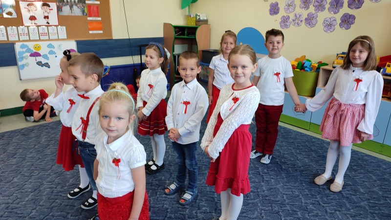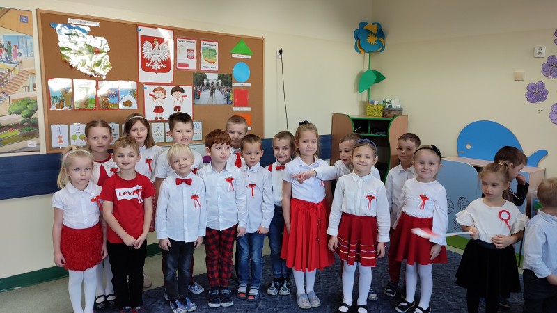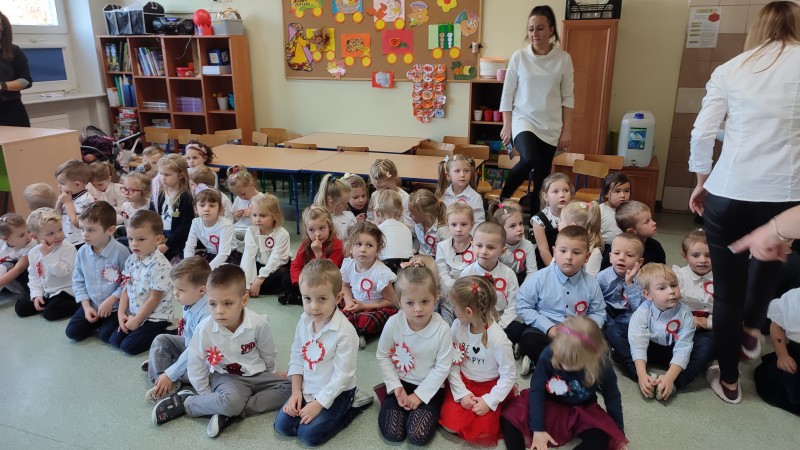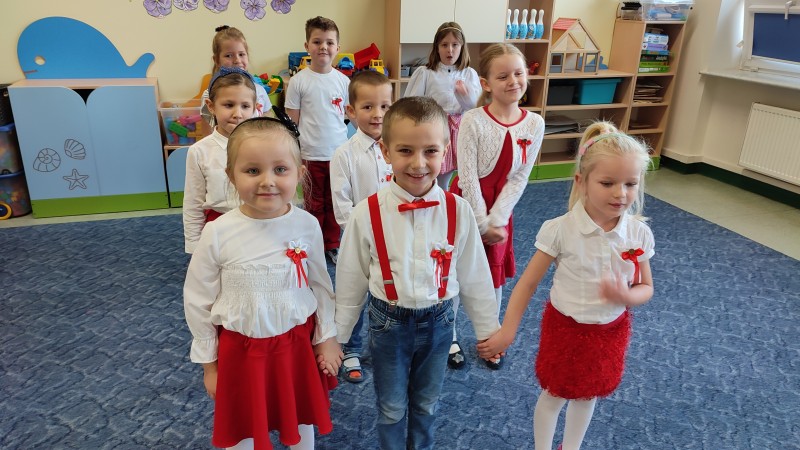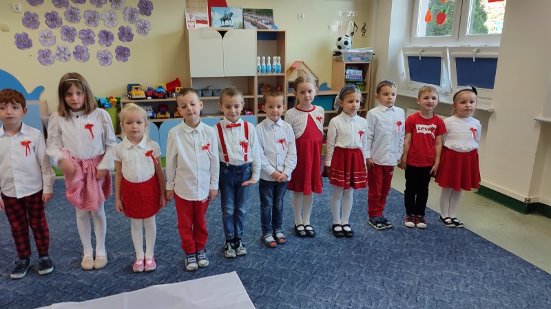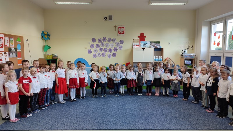 W ĹrodÄ 10 listopada o godzinie 11.11 MACZKI i pozostaĹe grupy w przedszkolu STOKROTKI-FIOĹKI-BRATKI i wszystkie Panie odĹpiewaĹy hymn narodowy MAZUREK DÄBROWSKIEGO dla NiepodlegĹej. Na zakoĹczenie tej niezwykĹej uroczystoĹci MACZKI przedstawiĹy krĂłtki program okolicznoĹciowy: wyrecytowaĹy wiersz W. BeĹzy ,,Polak MaĹy" i zataĹczyĹy ,,TROJAKA" taniec ĹlÄ ski. Przygotowany program siÄ podobaĹ czego wyyrazem byĹy gromkie brawa!.