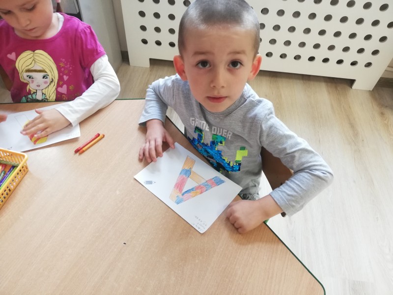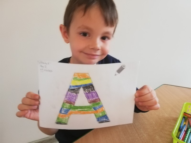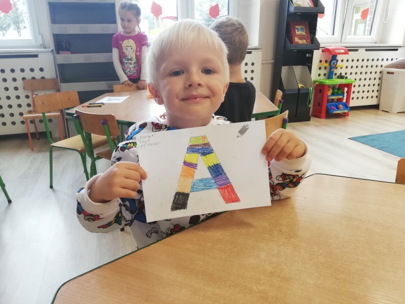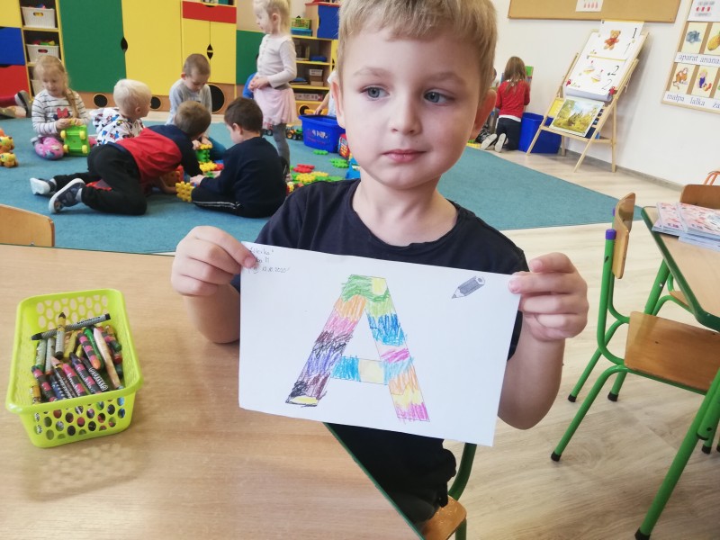 Po uĹoĹźeniu lier MACZKI przystÄ piĹy do ozdabiania literki A kolorowymi plamami. WyobraĹşnia dzieci pracowaĹa wyĹmienicie czego dowodem sÄ piÄkne prace, ktĂłrymi chÄtnie siÄ dzieliĹy.