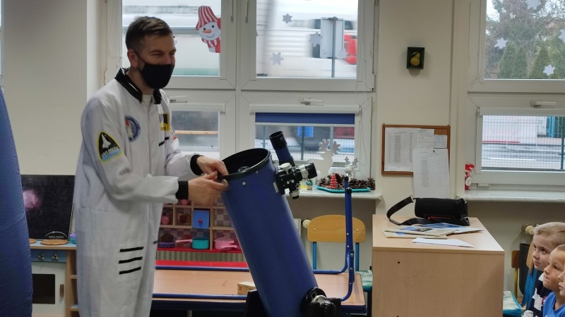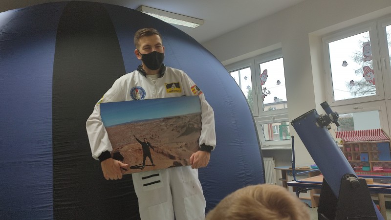 16 grudnia MACZKI wziÄĹy udziaĹ w multimedialntm pokazie w przenoĹnym Planetarium Astro Arena prowadzonym przez pana Daniela Stasiaka. Pan Daniel przybliĹźyĹ dzieciom prawdziwy kosmos; pokazaĹ MACZKOM teleskop, meteor,okruchy skalne- astreoidy, zaÄmienie sĹoĹca oraz drogi mleczne. ZaprezentowaĹ swoje prace, ktĂłre zostaĹy uznane w Stanach Zjednoczonych za jedne z najciekawszych na Ĺwiecie.