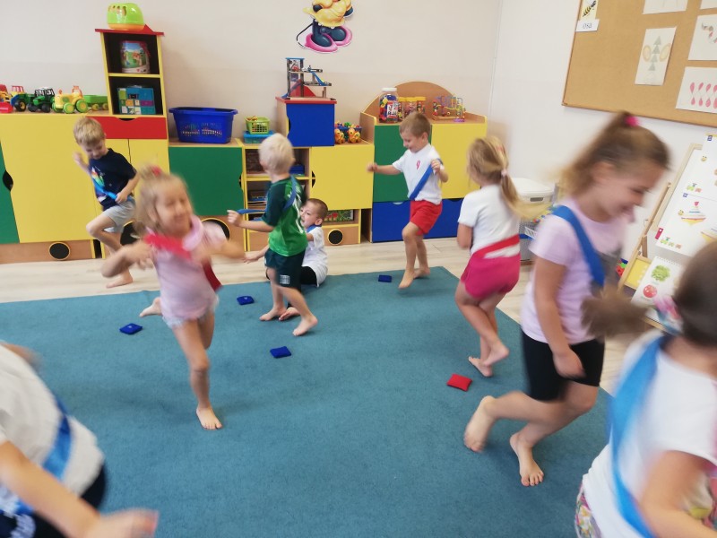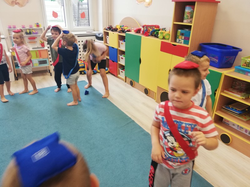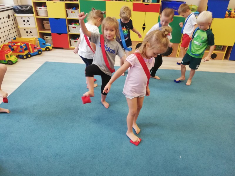 MACZKI na Äwiczeniach gimnastycznych uczÄ siÄ chwytaÄ palcami stĂłp woreczek, co nie jest takie proste. UczÄ siÄ chodziÄ wyprostowanym z woreczkiem na gĹowie, co sprawia jeszcze wiele trudnoĹci. UczÄ siÄ orientacji w zapamiÄtaniu poĹoĹźenia swojego woreczka, ale dzieci siÄ nie poddajÄ i wytrwale ÄwiczÄ !!