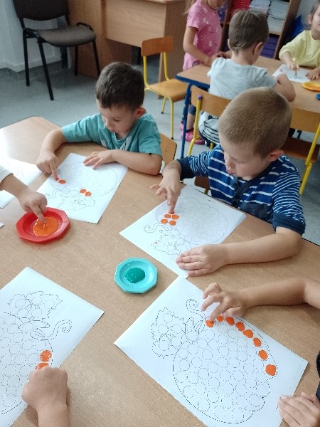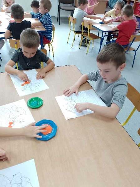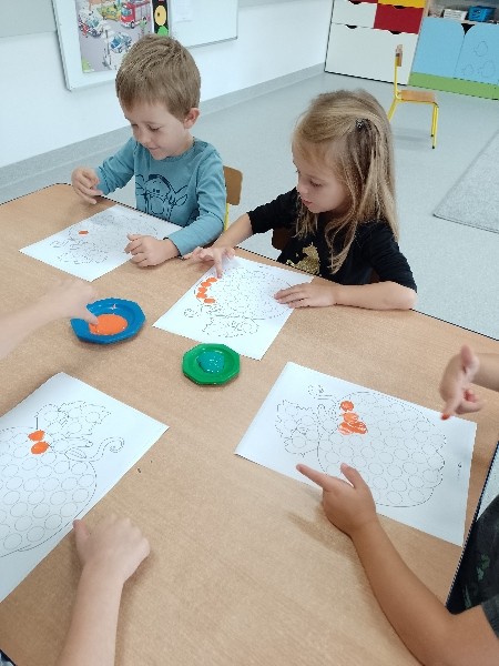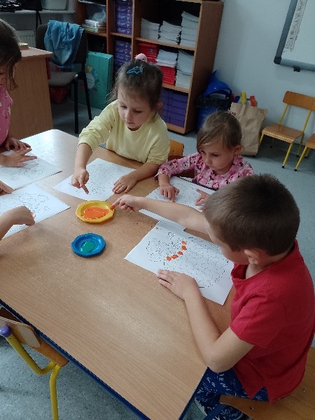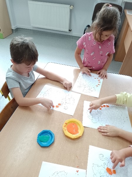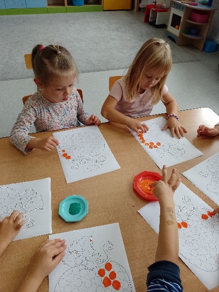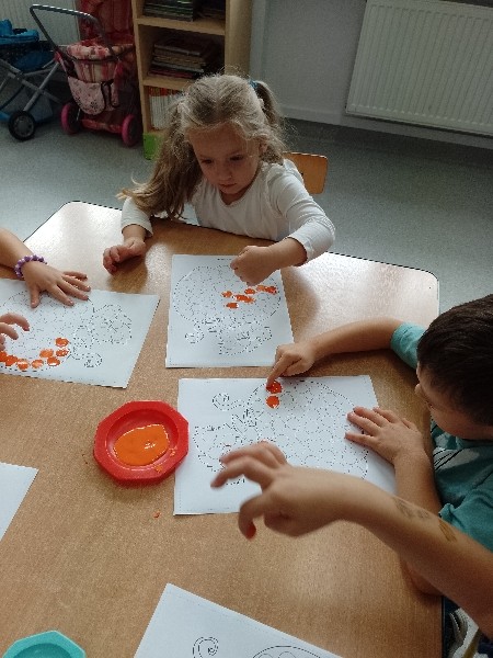 NastÄpnie paluszkami zrobiĹy kropeczkowÄ dyniÄ.