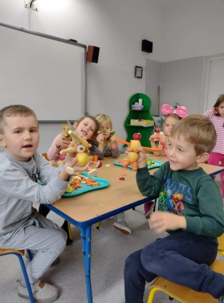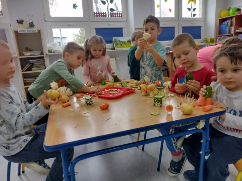 Stokrotki przepiÄkne wykonaĹy róşnorodne postacie i zwierzÄ tka z warzyw.