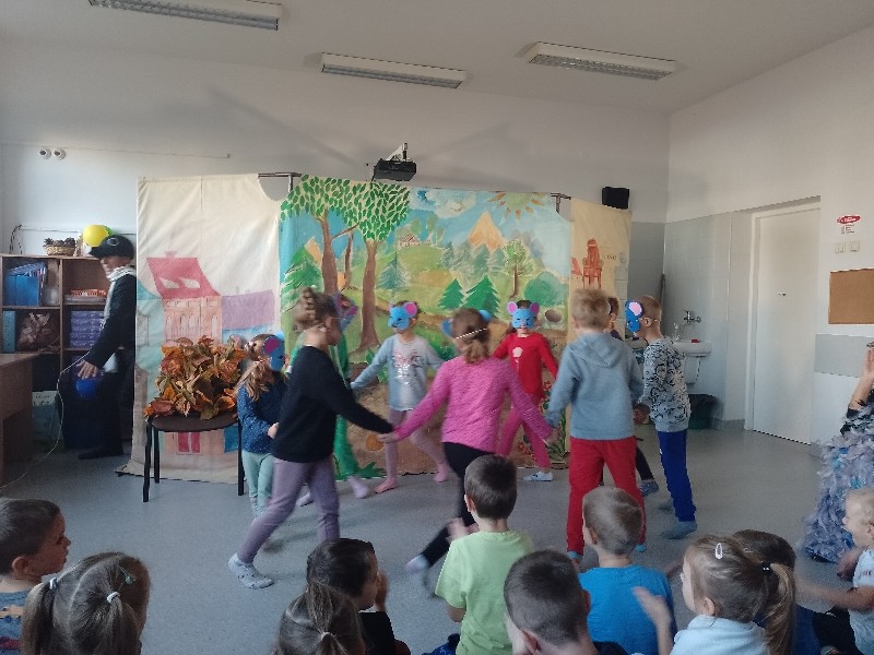 We wtorek Stokrotki obejrzaĹy przedstawienie teatralne o przygodach wrĂłbelka Elemelka.