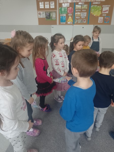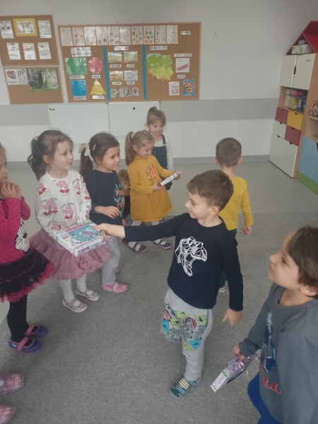 8 marca Stokrotki obchodziĹy DzieĹ kobiet. Dziewczynki otrzymaĹy od chĹopcĂłw upominki.