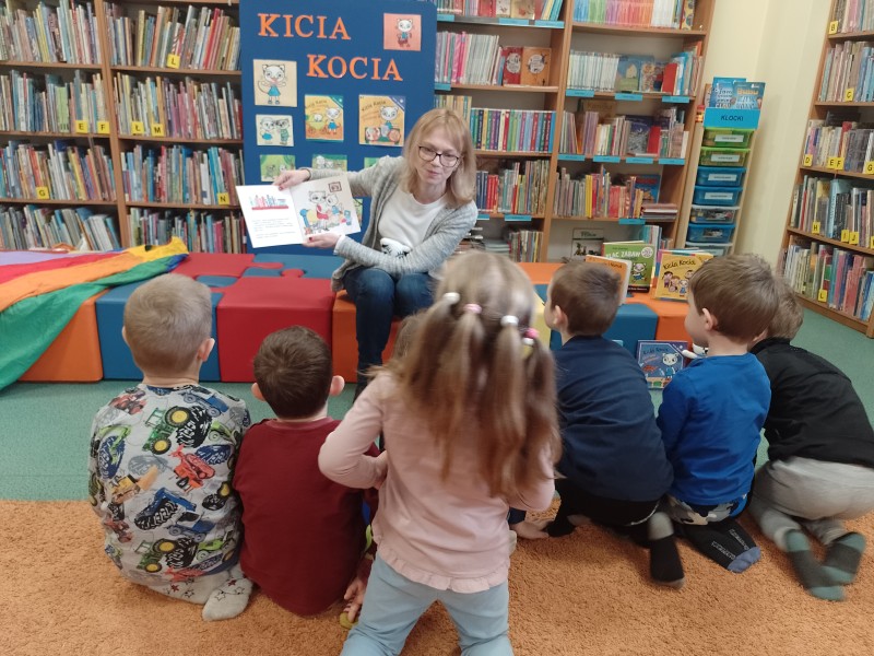 9 marca Stokrotki odwiedziĹy bibliotekÄ. PoznaĹy zasady wypoĹźyczania ksiÄ Ĺźek oraz miaĹy okazjÄ posĹuchaÄ opowiadania o Koci Kici.