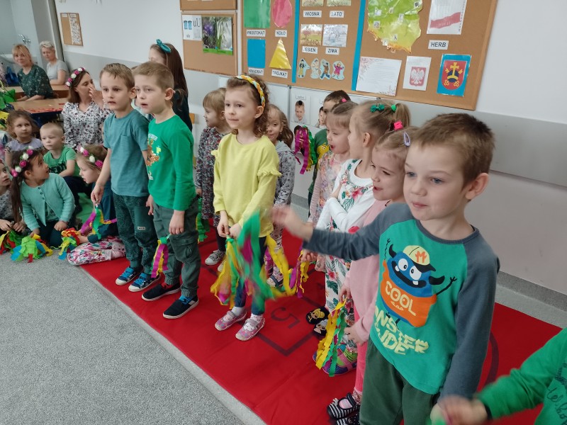 Dzieci zaĹpiewaĹy WioĹnie piosenki, przystroiĹy jej sukniÄ kwiatami, a na zakoĹczenie przeszĹy w barwnym pochodzie ulicami osiedla.