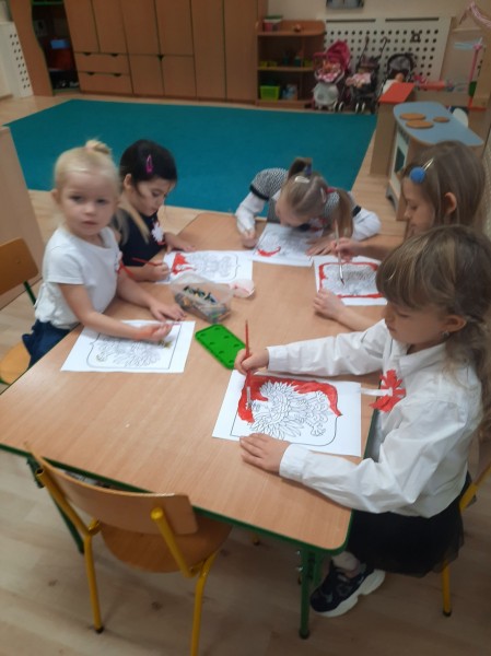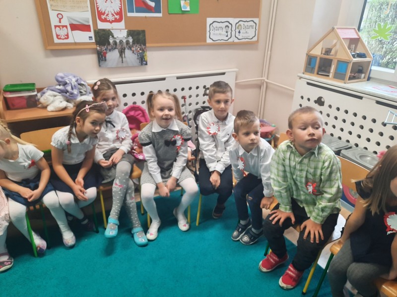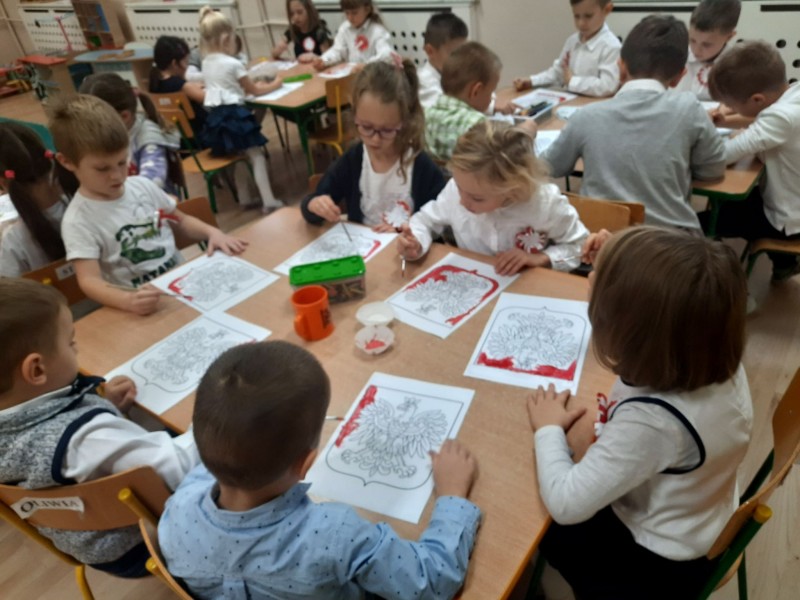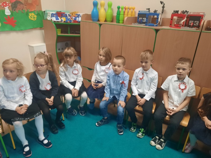 11 listopada to bardzo szczÄĹliwa data dla wszystkich PolakĂłw. WĹaĹnie tego dnia, po 123 latach niewoli, Polska odzyskaĹa niepodlegĹoĹÄ. PielegnujÄ c tradycje polskie 10 listopada w Przedszkolu, obchodziliĹmy kolejnÄ rocznicÄ odzyskania przez nasz kraj niepodlegĹoĹci. Tego dnia rĂłwnieĹź wziÄliĹmy udziaĹ w akcji: "SzkoĹa, przedszkole do hymnu". DokĹadnie o godzinie 11:11 wspĂłlnie odĹpiewaliĹmy "Mazurka DÄ browskiego". Dzieci obejrzaĹy takĹźe prezentacje multimedialnÄ , zwiÄ zanÄ z tym Ĺwietem, oraz wykonaliĹmy prace plastycznÄ .