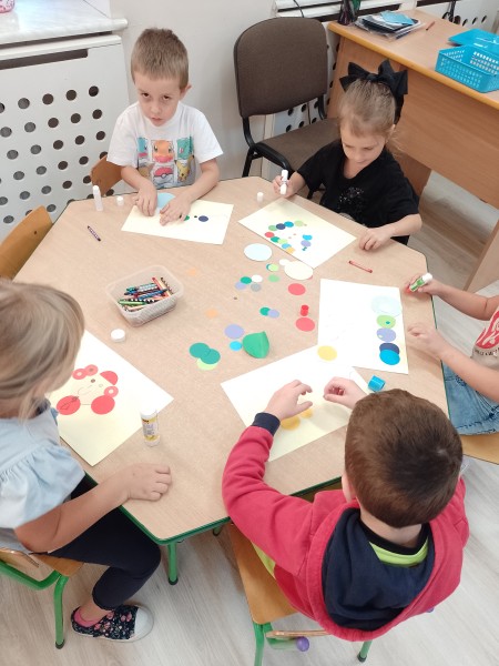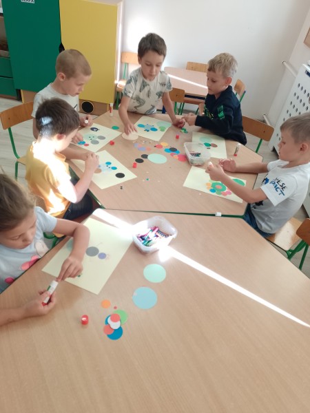 Na zakoĹczenie dzieci wykonaĹy kreatywne prace plastyczne z wykorzystaniem kropek.