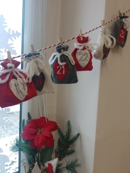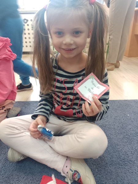 Jako pierwsza zostaĹa wylosowana Ola, ktĂłra w kalendarzowym woreczku znalazĹa wafelek i ĹwiÄ teczne zadanie dla wszystkich dzieci.