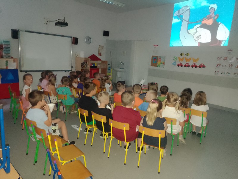W ramach realizacji rocznego planu pracy Stokrotki obejrzaĹy bajkÄ o naszym patronie Sindbadzie w przedszkolnym kinie.