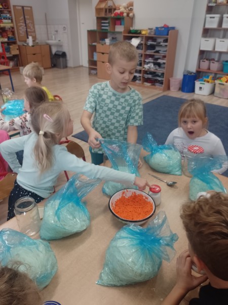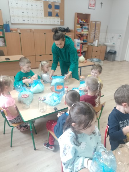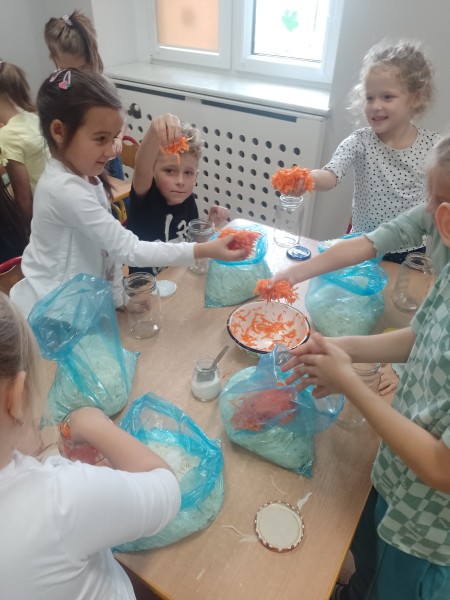 Pani MaĹgorzata przywiozĹa dla kaĹźdego dziecka woreczek z kapustÄ oraz wszystkie skĹadniki, ktĂłre sÄ potrzebne do kiszenia kapusty. OpowiedziaĹa nam o zdrowotnych wĹaĹciwoĹciach kapusty i pokazaĹa krok, po kroku jak jÄ przygotowaÄ.