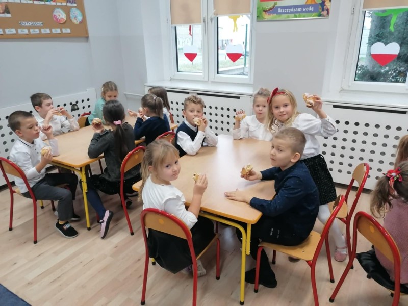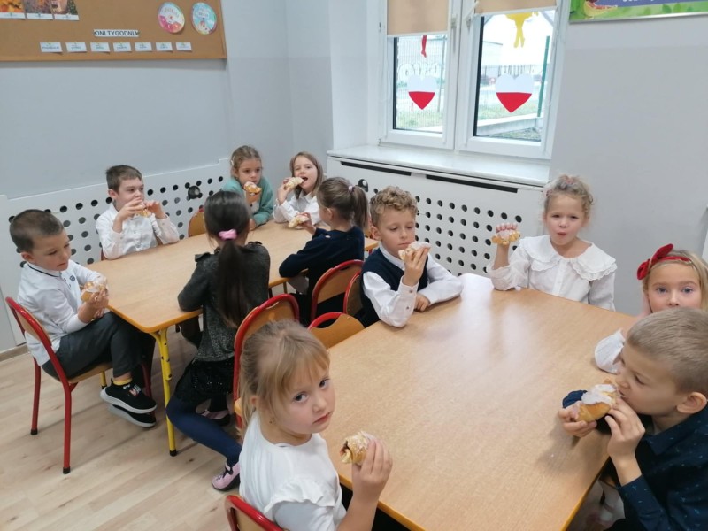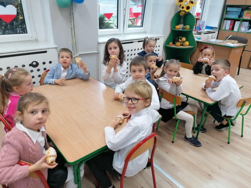 Po uroczystoĹci dzieci zajadaĹy siÄ pysznymi rogalikami.