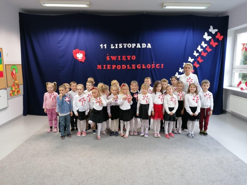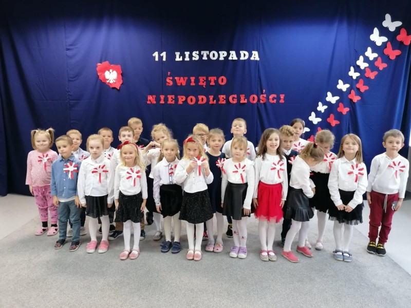 Stokrotki zaprezentowaĹy wiersz oraz zaĹpiewaĹy pieĹĹ patriotycznÄ "My pierwsza brygada".