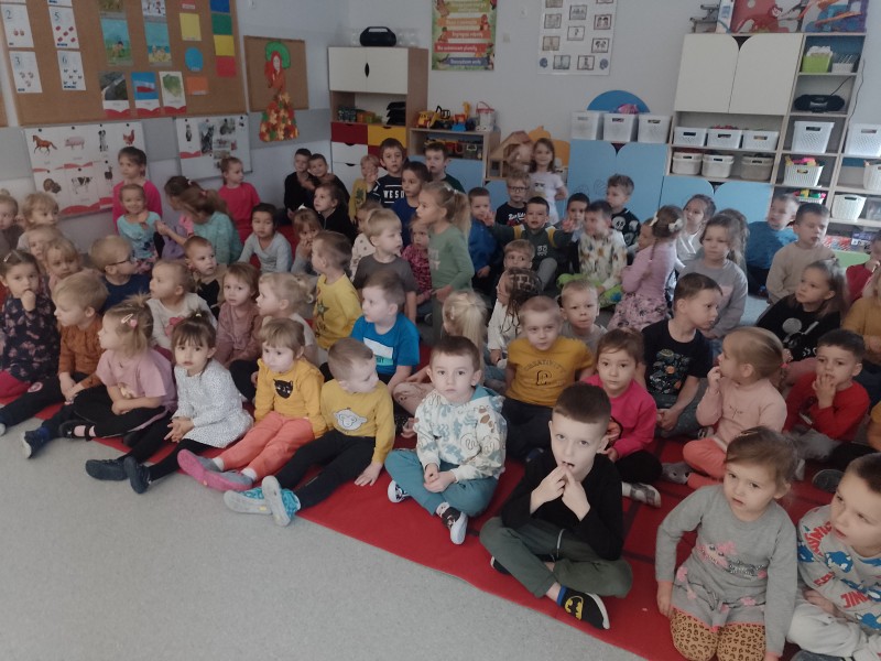 Dzisiaj Stokrotki obejrzaĹy przedstawienie teatralne w wykonaniu aktorĂłw teatru WĹĂłczykij pt: "ZĹoty Promyczek".