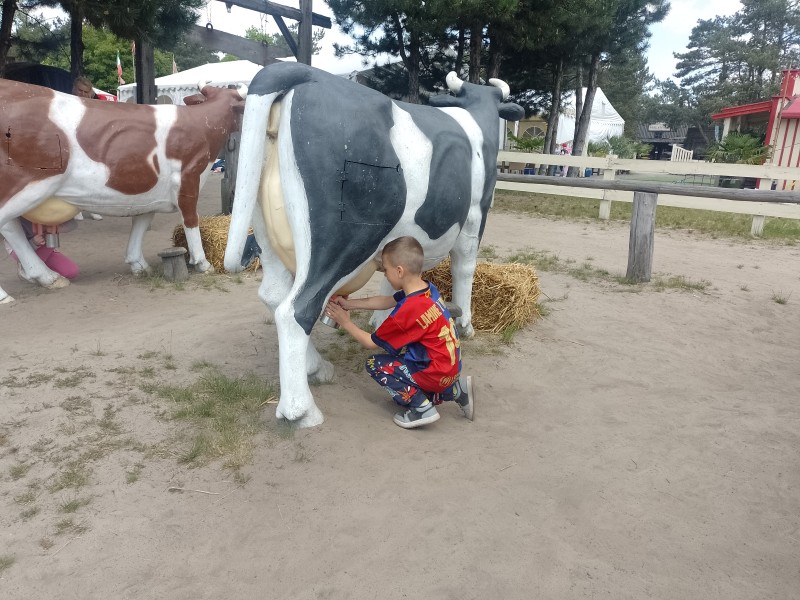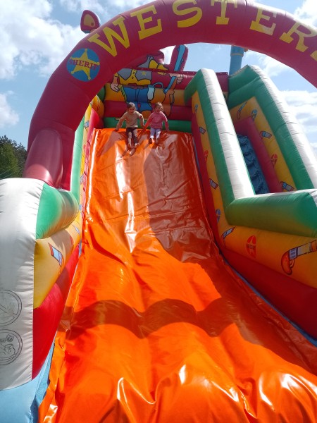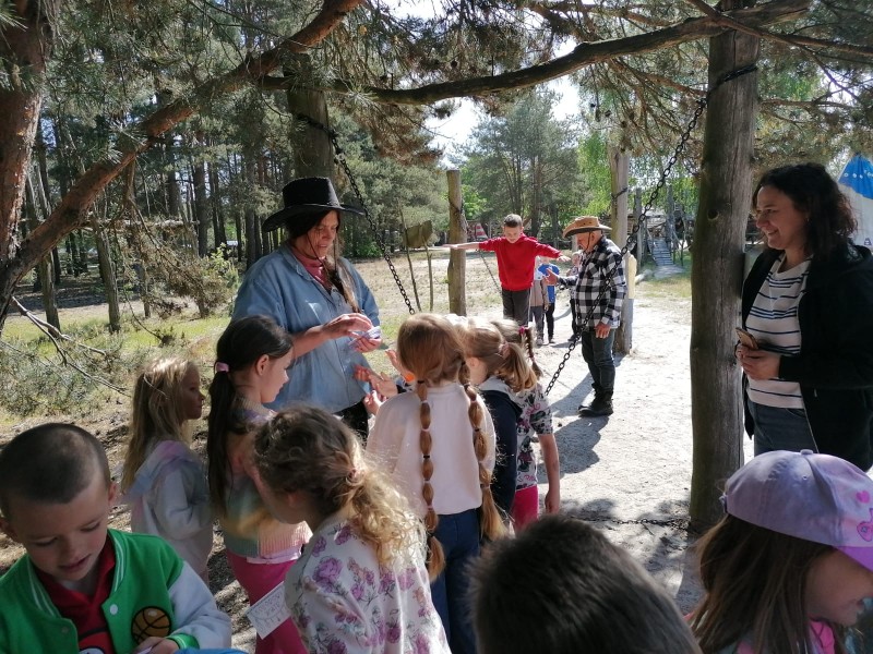 Dzieci spotkaĹy prawdziwego szeryfa, pokonaĹy tor przeszkĂłd, rzucaĹy do celu podkowami i kapeluszami, szukaĹy zĹota, doiĹy krowy, gĹaskaĹy zwierzÄta oraz skakaĹy na dmuchaĹcach.