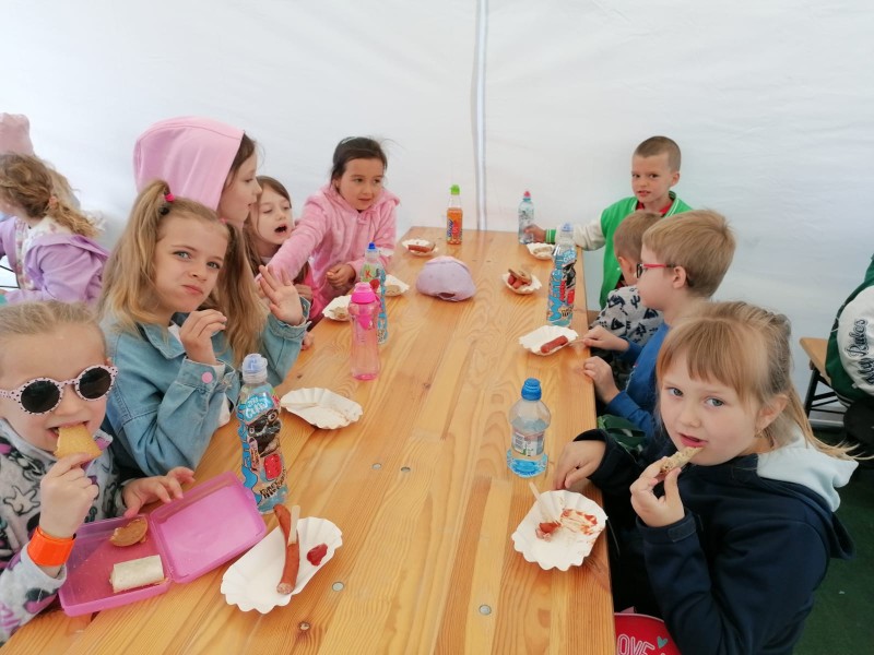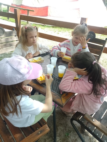 MiaĹy teĹź chwilÄ odpoczynku podczas ktĂłrego zjadĹy kieĹbaski z grilla oraz frytki.
