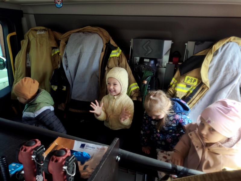 Stokrotki wziÄĹy udziaĹ w pierwszej prĂłbnej ewakuacji i spisaĹy siÄ na medal, a w nagrodÄ mogĹy wejĹÄ do wozu straĹźackiego.