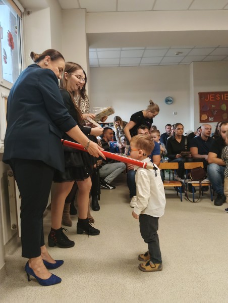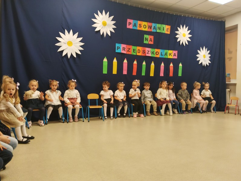 Po pierwszym publicznym wystÄpie pani dyrektor Agnieszka Brodala pasowaĹa kaĹźde dziecko na przedszkolaka i wspĂłlnie z przedstawicielem Rady RodzicĂłw p. SmÄtek wrÄczyĹy dzieciom pamiÄ tkowy dyplom i upominek.