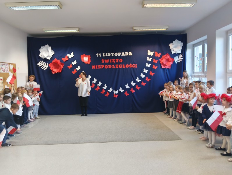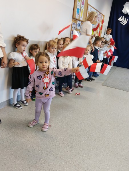 "SzkoĹa do Hymnu" - o godzinie 11:11 dzieci i pracownicy przedszkola przystÄ piĹy do uroczystego odĹpiewania Hymnu.