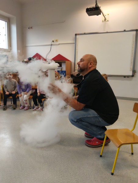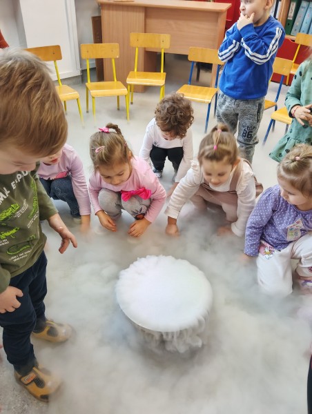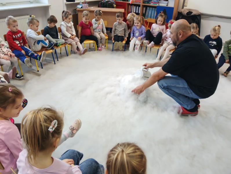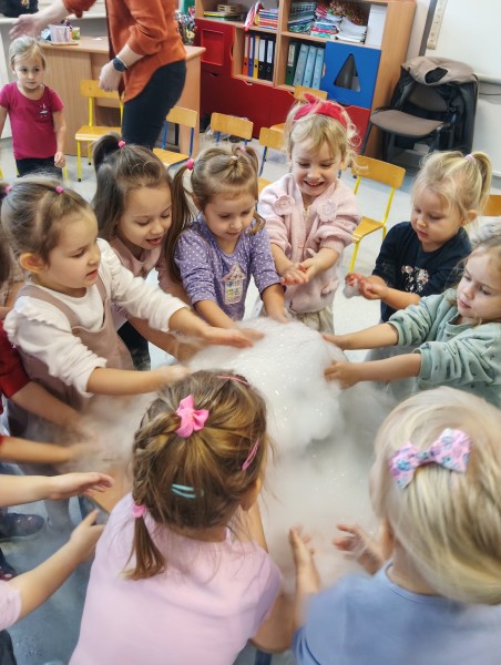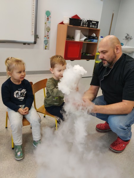 MiaĹy okazjÄ sprawdziÄ wĹaĹciwoĹci suchego lodu oraz ciekĹego azotu. ByĹ spacer po chmurach, wulkan z piany, czarodziejski balon oraz przysmaki z kuchni molekularnej - smocze chrupki, dymiÄ ce soczki i truskawkowe lody.