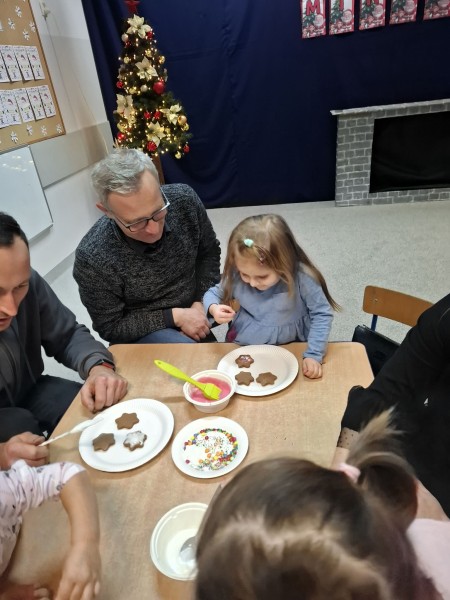 ByĹy wspĂłlne zabawy oraz ozdabianie piernikĂłw.