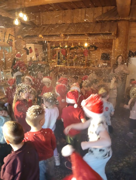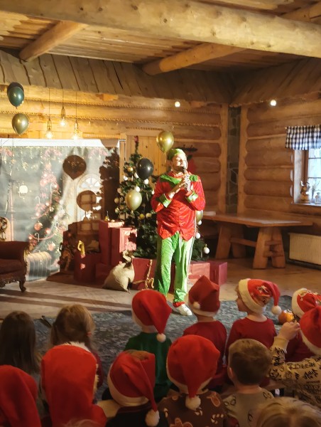 9.12.2025 najmĹodsze grupy z naszego przedszkola - Stokrotki i Bratki wybraĹy siÄ na wycieczkÄ do magicznej Chatki ĹwiÄtego MikoĹaja.