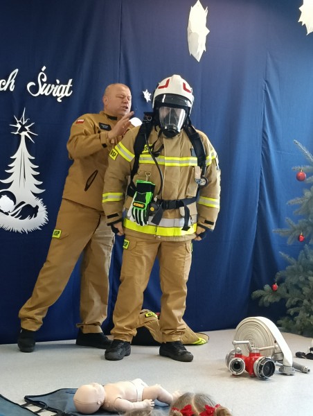 Spotkanie ze straĹźakami, ktĂłrzy przybliĹźyli nam swojÄ ciÄĹźkÄ pracÄ, pokazali elementy wyposaĹźenia oraz wspĂłlnie przeÄwiczyliĹmy udzielanie pierwszej pomocy.