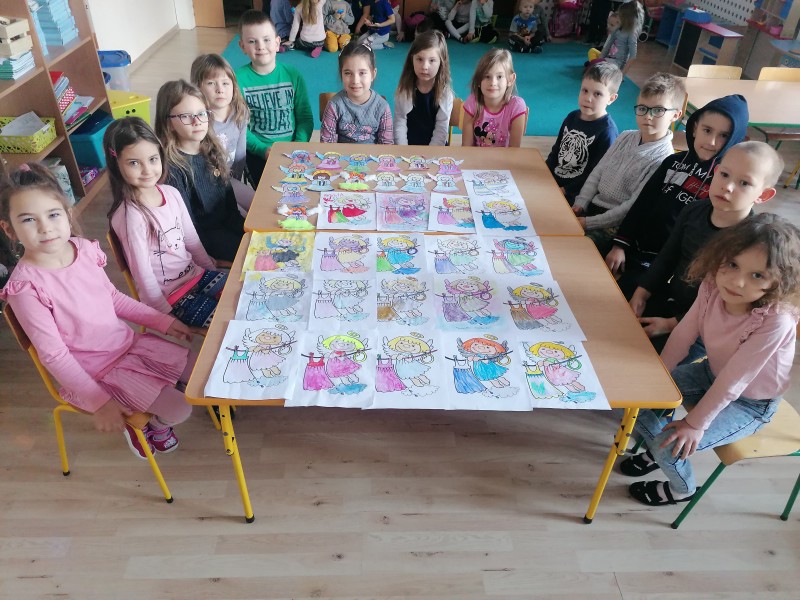 Stokrotki wziÄĹy udziaĹ w konkursie zorganizowanym przez FiliÄ DzieciÄcÄ Biblioteki Publicznej w Ostrowie Wlkp. Zadaniem dzieci byĹo pokolorowanie anioĹkĂłw. Prace dzieci byĹy kolorowe i starannie wykonane. Brawo!