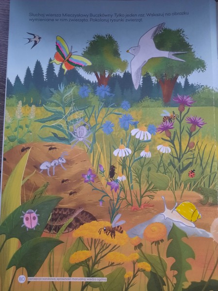 Po wysĹuchaniu wiersza, wskaĹź na obrazku wymienione w nim zwierzÄta. Pokoloruj rysunki zwierzÄ t.