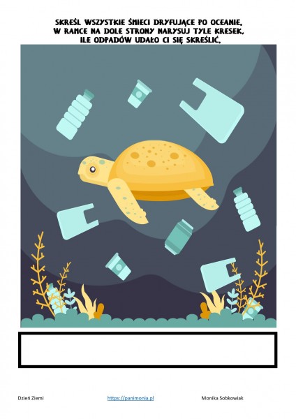 - SkreĹl wszystkie Ĺmieci dryfujÄ ce po oceanie. W ramce na dole strony, narysuj tyle kresek, ile odpadĂłw udaĹo Ci siÄ skreĹliÄ.