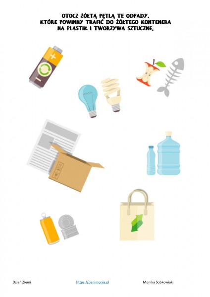 - Otocz şóĹtÄ pÄtlÄ te odpady, ktĂłre powinny trafiÄ do şóĹtego kontenera na plastik i tworzywa sztuczne