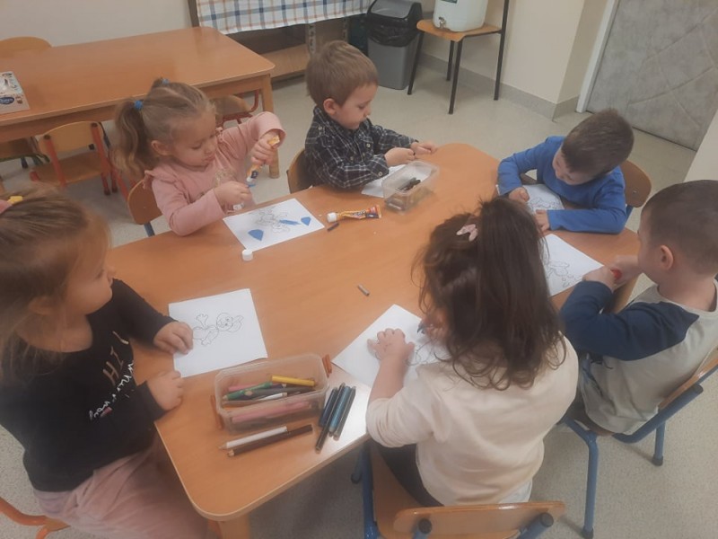 Grupa Stokrotki bierze udziaĹ w programie edukacyjnym "Mamo, tato, wolÄ wodÄ". Jego celem jest podkreĹkenie roli wody w codziennej diecie oraz wspieranie rodzicĂłw w prawdĹowym ksztaĹtowaniu nawykĂłw Ĺźywieniowych u dzieci.