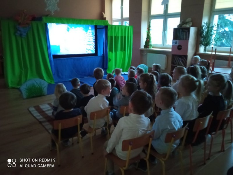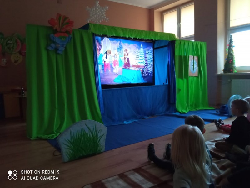 W poĹowie stycznia dzieci wziÄĹy udziaĹ w Interaktywnym spotkaniu z bajkÄ , podczas ktĂłrego spotkaĹy min. Pinokio, KrĂłlowÄ Ĺniegu czy patrona naszego przedszkola - Sindbada.